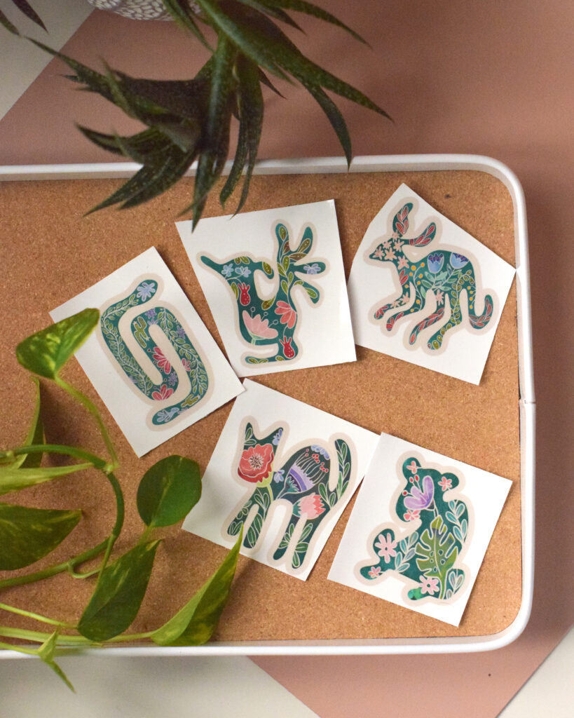 Collection 2025. J’ai un faible pour l’art mexicain. Les couleurs, les formes expressives, la joie qui imbuent plusieurs des pièces. Les ALEBRIJES, un style d’art populaire de créatures fantastiques au Mexique, sont un coup de coeur. Je les avais définitivement en tête quand je me suis amusée avec cette mini-collection d’animaux expressifs.